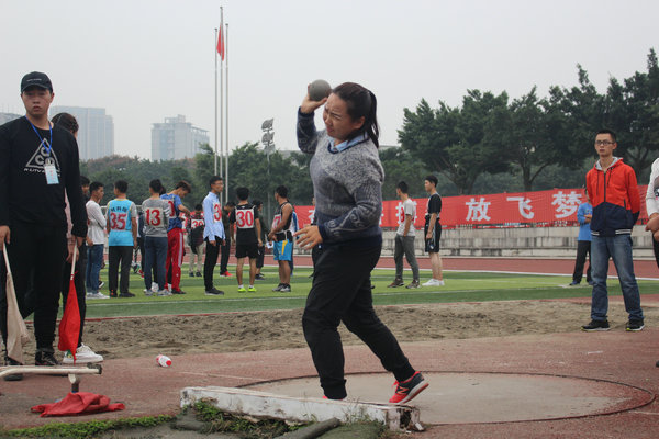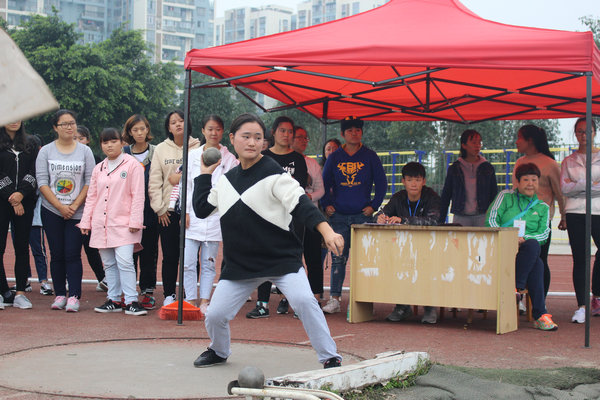 10月28日下午,伴著觀眾席上熱烈的氣氛,女子鉛球比賽在西南石油大學一期足球場正式開賽。此次比賽以預決賽的形式進行。在比賽開始前,各運動健兒們帶著焦急的表情等待比賽開始。裁判給運動員編完號后,選手們按編號站成一排,以編號先后順序參加比賽。比賽正式開始,各運動員們互不相讓,都拿出了自己的實力。待土建院選手曲咪拉姆上場時,她以慢而有力的步伐踏進了投擲區域,準備進行投擲。她兩腿分扎在地面、身體半蹲、重心后傾、左肩與頭部上揚、右手手臂收縮,手指緊握住球,然后有力地投了出去。鉛球在空中劃過一道美麗的軌跡,曲咪拉姆用這軌跡證明了自己的實力,最終投出了6.17m的好成績,獲得決賽第七名。