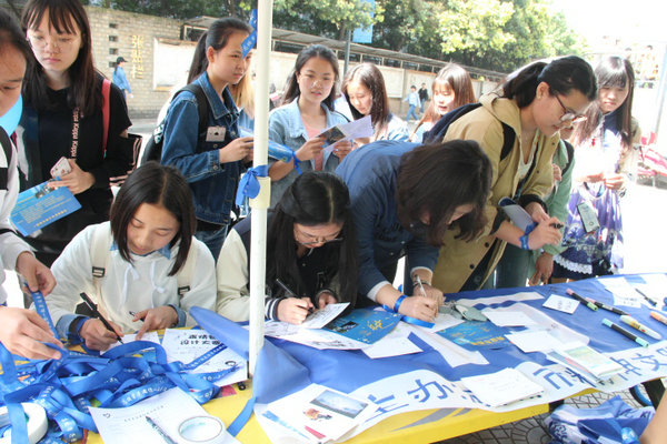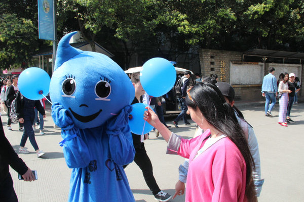 本次活動吸引了眾多學生參與。志愿者們?yōu)閰⑴c學生佩戴上了代表著純潔、天真的藍絲帶,并講解了有關(guān)自閉癥及其患者的相關(guān)知識。在聆聽中,大家對這一特殊群體有了更多的了解。同時,本次活動的吉祥物人偶也積極地幫助志愿者們分發(fā)宣傳資料以及藍色氣球,為本次活動的開展增添了一條獨特的風景線。