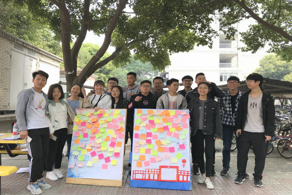 活動開始前,工作人員早早地將展板、貼紙和報名表等準備就緒,等待大家到場參與。隨著下課鈴聲響起,過往同學開始增多。志愿者們站在道路兩旁,向同學們遞發活動傳單,并向他們講解活動內容。漸漸地,越來越多的同學加入到撰寫三行情書的隊伍當中,他們用手中的筆寫下了對石大濃濃的情意。在大家的積極參與下,展板很快被貼滿,活動也取得了圓滿成功。