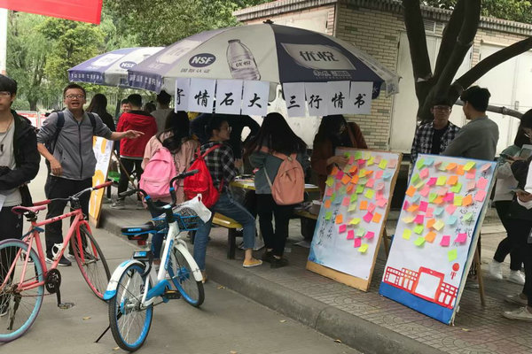 4月11日中午,土建院“風雨起航六十載 不忘初心賀校慶”校級團學精品系列活動之“寄情石大”三行情書大賽在一食堂外順利進行。本次活動目的是通過撰寫三行情書的方式,讓廣大學生在60周年校慶來臨之際,表達對石大最美好的祝愿。