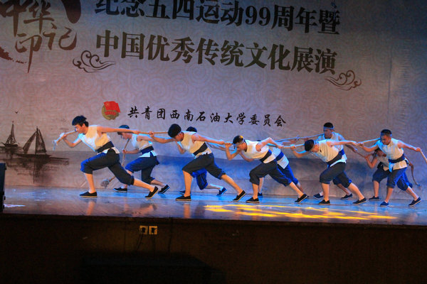 5月3日晚,由共青團西南石油大學委員會主辦的“紀念五四運動99周年暨中國優秀傳統文化展演”比賽在藝術大樓演播廳順利舉行。整場展演比賽精彩紛呈,各學院憑借多樣的表演形式以及極高的表演質量,為觀眾們帶了一場視覺盛宴。其中,土建院憑借表演《川渝魅力·川江號子》榮獲本次比賽三等獎。