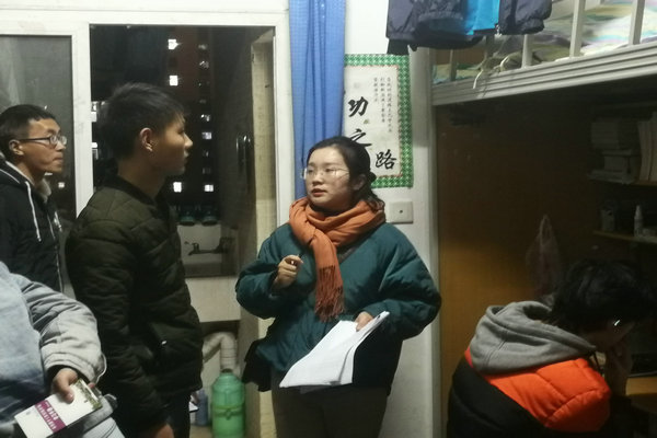 走訪結束后,來自18級土木工程的張聰益談到:“學期過半,伴隨嚴寒而來的不只身體的寒冷,還有來自學業的壓力,輔導員走訪寢室時,與我們的交流,讓我明確了自己的目標和未來的方向,對于學業壓力下的生活也不再迷茫,希望輔導員能時常走訪寢室,與學生們交流學習與生活之中的問題。”