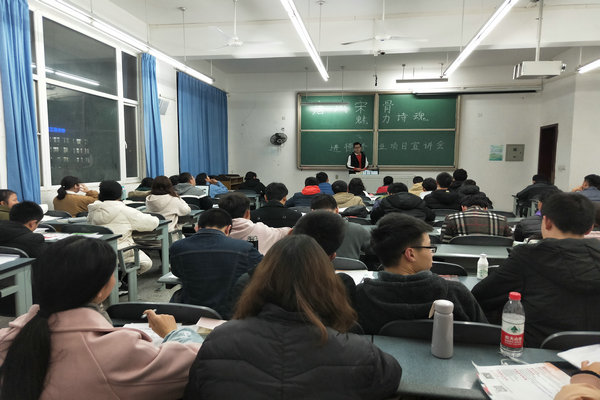 舉辦詩詞大會 項目組在學校舉辦了一場詩詞大會,本次詩詞大會分為初賽、復賽、決賽三個階段,初賽是線上答題方式,參與人次達1600余人次。經過線上答題過后選出了88名選手參加復賽線下答題,經過激烈角逐,共有18名選手脫穎而出參加詩詞大會決賽。決賽現場選手和觀眾積極互動,氣氛熱烈。在評委老師就位后,各參賽小隊在負責人的帶領下也來到了相應位置,準備接下來的比賽。主持人簡單致辭后,比賽拉開了序幕。第一個環節是必答題,每隊限時一分鐘,任選題目作答,答對一題加十分。六支隊伍冷靜作答,均取得了不錯的分數。隨后進行的便是緊張激烈的搶答題環節,本環節由主持人公布題目,參賽隊員全員參與,通過舉牌搶答題目。搶答題環節是拉開和對手差距的關鍵,六支隊伍爭先恐后,每個隊員都積極參與進來,將自己的反應力和平時積累的知識發揮到了極致。搶答題環節結束,在該環節表現出色的“平川隊”開始嶄露頭角。最后一個環節便是飛“花”令環節,這個環節非??简瀳F隊的默契和選手的詩詞底蘊。六支小隊都卯足了勁,準備進行最后的角逐。觀眾席上此刻也爆發出了陣陣掌聲,為自己支持的隊伍加油鼓勁。最終,由土建院、石工院的同學組成的“平川隊”力克其他五支小隊,拿下了本次詩詞大會的桂冠。
