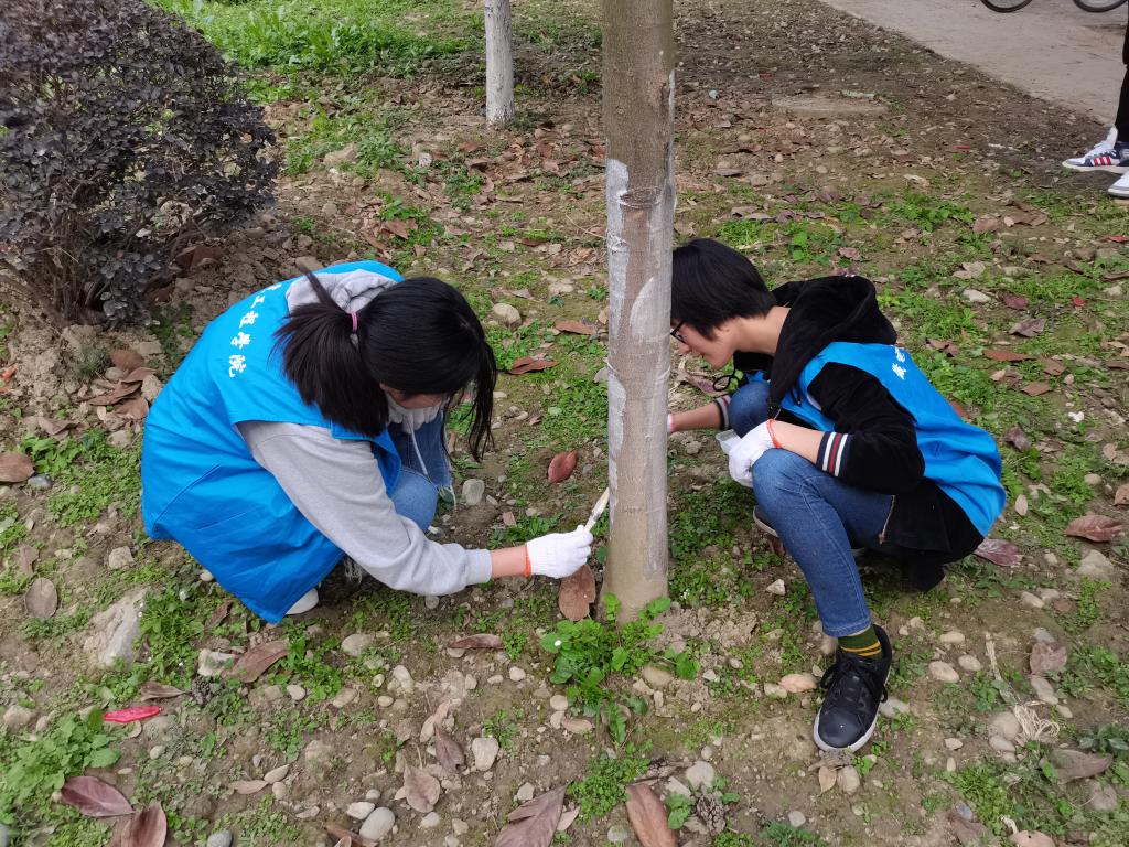 活動開始于下午4:00,學生們滿懷熱情地提前到達感恩林,戴上手套,兌好白漆,拿起刷子,高效地將小樹苗的樹干涂白,起到樹干防蟲的作用。由學工部、各學院、 廣大獲獎受助學生三方共同出資購買樹苗、合力平整土地、親自動手栽種的學子感恩林,經過每屆學子的細心呵護,屆屆相傳,棵棵茁壯。活動結束后,學生們在這片樹林中定格下了自己勞動的身影,留下了熾熱的感恩之心。十年樹木、百年樹人,廣大青年學子將不忘初心、砥礪前行,在新時代立德樹人的新征程中接力傳承,奮力生長。
