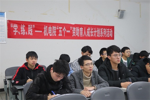 近期,為做好西南石油大學(xué)第三批家庭經(jīng)濟(jì)困難學(xué)生成才型資助示范項(xiàng)目,機(jī)電院“‘學(xué)、練、踐’——機(jī)電院‘五個(gè)一’資助育人成長計(jì)劃”歷時(shí)一年,順利完成。