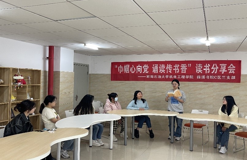 最是書香能致遠,腹有詩書氣自華。為提高黨員的黨性修養,營造“愛讀書、讀好書”的良好氛圍,4月3日下午2點,機電院微社區臨溪書院C區三支部于臨溪書院B102開展“巾幗心向黨 誦讀傳書香”讀書分享會。活動由支部書記黃馨月主持,支部黨員代表參與。