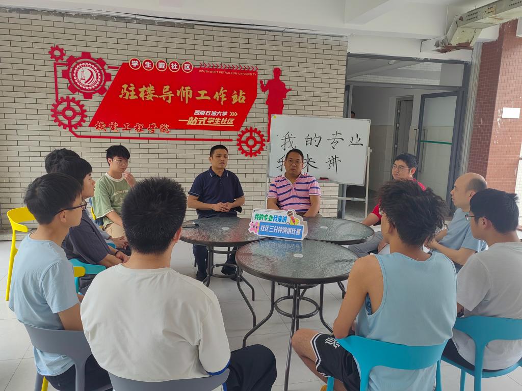 4月16日中午12點,機電院學生代表圍坐在篤行居C區(qū)3樓平臺,參加“駐樓導師工作站”的社區(qū)講堂活動,本次活動邀請到了中國石化集團茂名石化劉川工程師、中韓石化曾令華工程師、上海高橋石化梁康工程師等三位校友深入學生社區(qū)開展宣講,活動由學院團委書記章志華主持。本次交流活動圍繞“傳承石油基因、賡續(xù)紅色血脈”為主題,重點交流機械類人才在石化行業(yè)的重要作用。