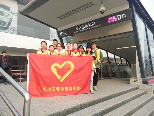 機電院青年志愿者協會于2017年12月23日到達成都地鐵3號線軍區總醫院站點進行了為期一天的志愿活動?;顒觾热葜饕獮閹椭焕斫赓I票程序的人買票,為不清楚地形的人指路。雖然這些事看起來微不足道但是卻適時溫暖人心幫助到了他人。