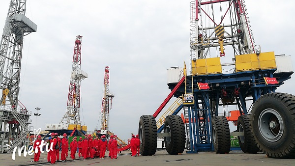 四川宏華石油設備有限公司的工程師正在給同學們講解海油鉆機