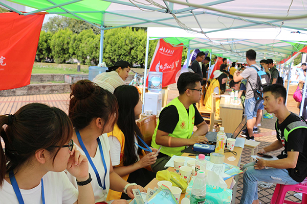8點開始,新生開始陸續(xù)報道,漸漸形成一條流動的風景線,越來越多的17屆新生從博學廣場下車,在機電工程學院的指示牌和工作人員的帶領(lǐng)下,有秩序的進行報到注冊,再從博學廣場到旁邊的體育館領(lǐng)取軍訓用品,緊接著志愿者帶領(lǐng)新生去到較遠的明志樓遞交學生檔案,最后新生依舊在志愿者和工作人員的指引下去寢室放置行李,正式開始開啟到達大學的生活!