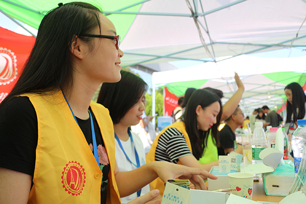 9月7號一大早,在博學廣場兩頂象征著迎新心聲的青綠帳篷中,機電院的志愿者和工作人員就已經(jīng)準備就緒,穿著明黃色的工作服熱情滿滿的迎接機電院的新生了。