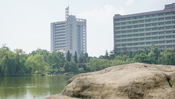 龍井湖畔左側火箭樓、右側第一實驗樓