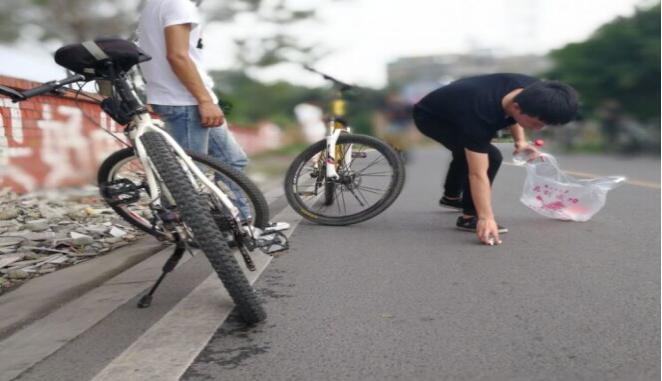 騎行途中,我們遇見了布滿垃圾的臭水溝,遇見了整潔的大路上的扎眼的白色垃圾,隊員們停下腳下的自行車,提著身邊的垃圾袋,將其一一拾起。雖然從外人看來,我們所做的微不足道,但如果我們能在這個時期樹立好良好的榜樣,能夠讓他們看在眼里,并在以后也能做到像我們這般,我們騎行的目的就已經達到了。