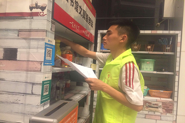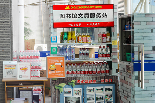 正值考試周,校內(nèi)的圖書館成為了西南石油大學(xué)學(xué)生們閱讀、自習(xí)的好去處。圖書館入口一角的圖書館文具服務(wù)站是館內(nèi)同學(xué)自助服務(wù)的一個窗口,由機(jī)電院學(xué)生第三黨支部設(shè)立和維護(hù)。隨著圖書館流動人數(shù)的增多,服務(wù)量也日益增加,機(jī)電院學(xué)生第三黨支部經(jīng)過商議,決定通過一系列措施完善文具服務(wù)站服務(wù)體系、增加文具服務(wù)站服務(wù)效率、以一定程度上增加銷售額來幫助更多需要幫助的邊遠(yuǎn)地區(qū)的學(xué)校和教育機(jī)構(gòu)。