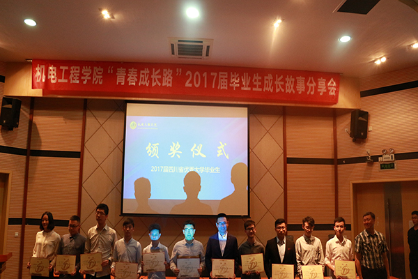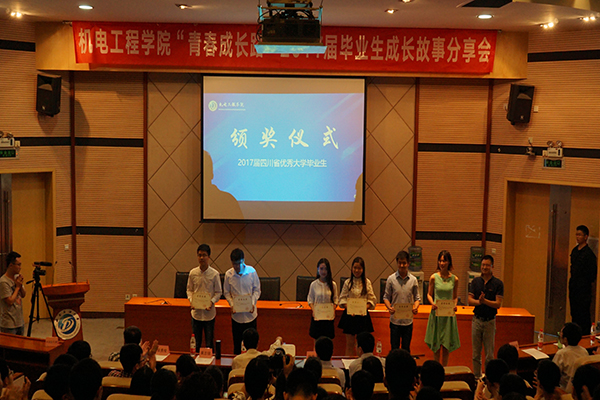 首先進行的是2017屆省級優秀畢業生、校級優秀畢業生的頒獎儀式。學院黨委副書記姚偉寧宣讀表彰文件,院長黃志強為省級優秀畢業生頒獎,副院長侯勇俊為校級優秀畢業生頒獎。頒獎結束后,分享會正式開始。