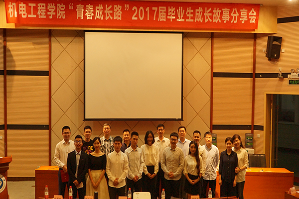 六名2017屆機電院優秀的畢業生,來自不同的專業,他們在各自領域獲得非凡成績,為現場同學講述他們出彩的大學生活。機電工程學院“青春成長路”2017屆畢業生成長故事分享會,于5月21日晚在思學樓A114隆重舉行。學院黨委書記李澗松,院長黃志強,黨委副書記姚偉寧,副院長侯勇俊,副院長韓傳軍,機械工程教研室副主任、黨支部書記馬海峰,過程裝備與控制工程教研室副主任、黨支部書記胡坤,測控儀器與技術教研室主任張禾,工業設計教研室副主任、黨支部書記李陵等領導、老師參加報告會。