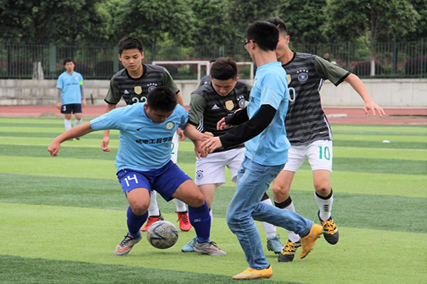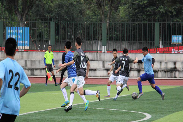 決賽現場精彩紛呈,大四球隊率先拿下一分,而大二球隊也不甘落后,扳平比分后乘勝追擊,在比賽下半場將比分優勢擴大到2:1。比賽接近尾聲時,大二球隊上演“帽子戲法”,隊員李龍鑫再進一球,以3:1的比分成功“逆襲”奪冠,李龍鑫也因本次比賽的優秀表現奪得“最佳射手”榮譽稱號。