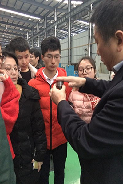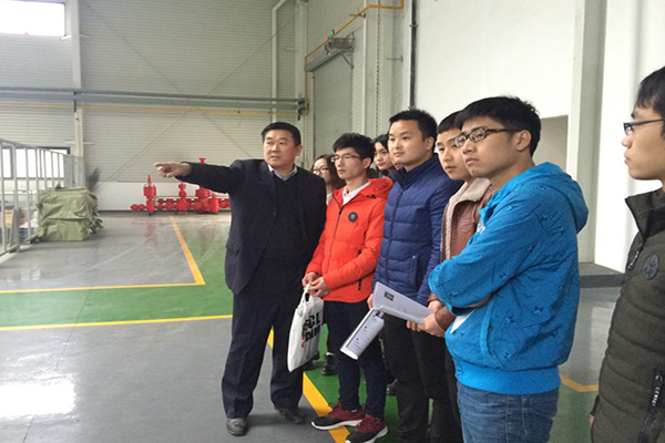 在公司董事宮渝的帶引和解說下,同學們在公司在新都工業區的廠區參觀了完井工具、射孔彈和射孔槍的加工和制造。“我們的完井工具在國內的技術水平是很高的,長期供應中海油,也出口到哈里貝頓等國際供應商。”宮渝給大家介紹,同時詳細解釋其工作原理。同學們在參觀的過程中,一邊提問一邊學習。