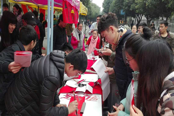 2016年12月29日、30日中午11:20-13:00,在雞年新春佳節即將來臨前,由我院學生李大法、許翔程、涂鳳秒組織的“迎新春·送春聯”活動在一食堂外舉行,為全校師生送春聯、送健康、送祝福。本次活動由我院學生李大法(書畫協會會長)、許翔程、涂鳳秒以及協會其他所有理事參與策劃、組織。