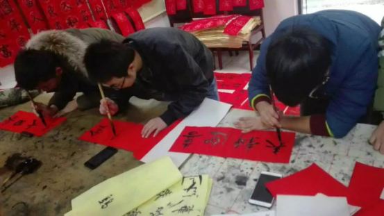 北風(fēng)飄雨四更初,嘉瑞天教及歲除,歸家之意猶未盡,西柚校內(nèi)寫桃符。元旦佳節(jié)將近,我西柚莘莘學(xué)子將共同見證2017的到來。適逢寒假,思家之心,才下了眉頭,卻又上了心頭。當(dāng)然,我們不能忘記歷史傳統(tǒng),在校園書畫協(xié)會(huì)的組織下,我們即將開展校園送春聯(lián)活動(dòng)。為了辦好這次活動(dòng),書畫社成員特意展開了前期籌備活動(dòng)。他們每周相約在香城學(xué)府詩書畫社,在趙老師的指導(dǎo)和陪伴下,開始了寫春聯(lián)活動(dòng)。鮮紅的楹聯(lián)紙張,磅礴大氣的字體,一筆一劃都充滿了情義,縱使寒風(fēng)陣陣,也阻擋不住大家的熱情。