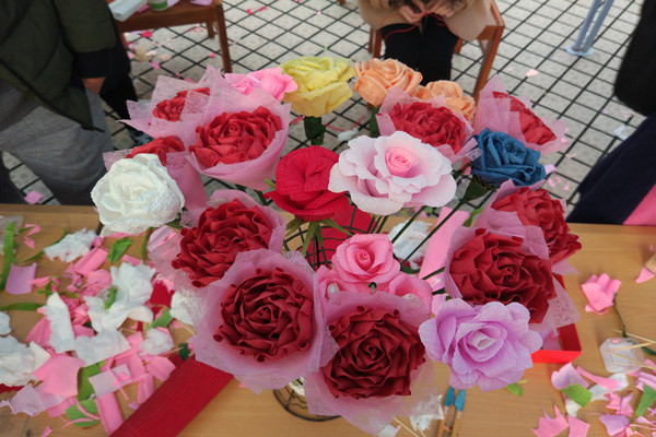 這次周年慶典設(shè)置了5個(gè)攤位,分別是“中國(guó)結(jié)手鏈”、“黏土”、“蝴蝶結(jié)”、“沙畫瓶”、“皺紋花”。每種手工藝品都獨(dú)具特色,同學(xué)們可根據(jù)自己的喜好制作不同的手工。黏土和沙畫瓶包含著無窮的創(chuàng)造力,激發(fā)了同學(xué)們的想象力。中國(guó)結(jié)手鏈有著濃濃的中國(guó)情懷,提醒同學(xué)們?cè)谶@個(gè)文化相互交融的時(shí)代不要忘記自己的傳統(tǒng)文化。每一個(gè)攤位前都站滿了認(rèn)真學(xué)習(xí)、制作的同學(xué),熱鬧的氣氛感染著每一個(gè)參加的人。經(jīng)過一下午的奮斗,同學(xué)們都制作出了讓自己滿意的作品,活動(dòng)現(xiàn)場(chǎng)一片歡聲笑語。每一個(gè)手工藝品的誕生都代表著的同學(xué)們的創(chuàng)新精神。