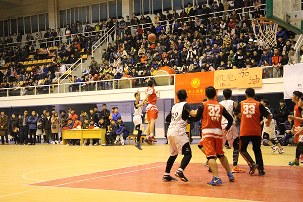 下半場(chǎng)比賽剛開始,機(jī)電院隊(duì)還是保持著上半場(chǎng)的優(yōu)良狀態(tài),比分差距一度達(dá)到8分,但是石工的進(jìn)攻愈加猛烈,并且更換戰(zhàn)術(shù),機(jī)電的戰(zhàn)術(shù)體系未能完全施展開,錯(cuò)失多次機(jī)會(huì)。石工院趁機(jī)挽回比分,逐漸反超,其間機(jī)電隊(duì)員雖有多次搶段、和3分精準(zhǔn)命中,但由于對(duì)方多次罰球,失去了反擊的最佳機(jī)會(huì),最終比賽以石工院獲勝結(jié)束。