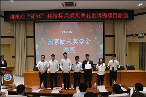 2018年5月28日晚思學樓機電工程學院舉辦了“礦90”科技標兵頒獎典禮暨優秀項目路演,旨在表彰那些在科技和創新方面取得成就的機電學子,并以此來激勵各位參加此次會議的同學多參加科技和創新比賽,達到提升自己的目的。