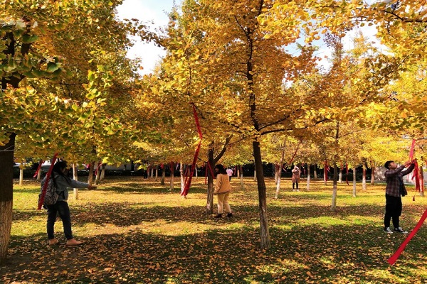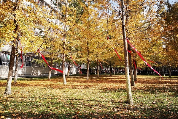 圖二:銀杏林飄揚的紅絲帶