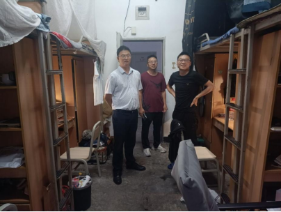 圖3 學(xué)院領(lǐng)導(dǎo)老師走訪研究生畢業(yè)生男生寢室