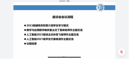 輔導員和晉通過橫向、縱向對比,向家長們反饋了學生2024年秋季學期的績點情況,從課程難度、學習方法、學習態度、職業規劃等多個角度進行了分析,肯定了同學們取得的進步,也指出了存在的問題和不足,并從學科競賽、綜合素質提升、技能儲備與職業啟蒙等多方面提出了針對性的建議和措施,鼓勵家長們積極與學校配合,共同促進學生的學習和成長。數學與應用數學教研室主任丁老師從就業與考研形勢出發作了主題交流,讓家長們對數學與應用數學專業有了初步的深入了解。孫勁飛老師從自己的學習經歷出發,分享了一些學習方法和技巧,建議家長們引導孩子養成良好的學習習慣,提高自主學習能力。學生代表楊清分享了自己的求職準備與學習經驗,分享了自己的求職過程。