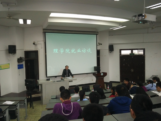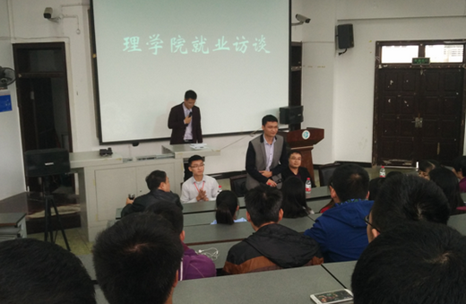 為促進我院學生端正就業態度,轉變就業觀念,主動求職,積極就業,11月3日下午16:00,理學院在思學樓C210舉辦了就業訪談活動。活動邀請到理學院畢業生鐘文文、劉垚燦、葉浪與大家交流,學院大二、大三全體同學參加了會議,學院黨副委書記彭永清、團委書記王茂江出席活動,活動由2015級學生王棟磊主持。