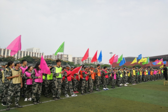 本次素質拓展訓練營活動主要包括:青春的吶喊、挑戰門、七彩華誕躍龍門等創新型項目,活動中422名同學被分為7個隊,每組均在短暫的時間內確定了隊長,隊名,隊旗,口號和隊歌,有競爭也有合作。在活動過程中,團隊不斷商討,改變策略,互相鼓勵,大家都各司其職,在拓展項目中不斷形成默契,這種關系由原來松散的個體磨合成為一個能夠沖破任何防線的集體,完成了一個個看似不可能的任務,證明了自己,超越了自己。通過分享感悟,每個隊員都體會到了團隊協作在任務執行過程中的重要性,同時也學會了如何突破自己心理的極限,實現個人心理障礙的跨越,發展個人潛力。