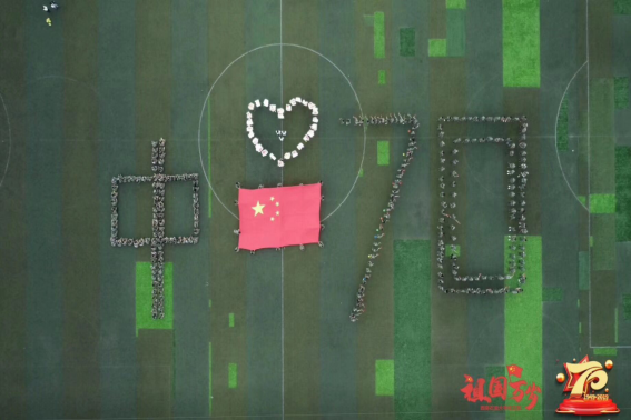 最后一個環節,同學們合力吹氣球,各組分別用不用顏色氣球做成7條20米“長龍”,并以“舞龍”的方式表達對新中國成立70周年的生日祝福。