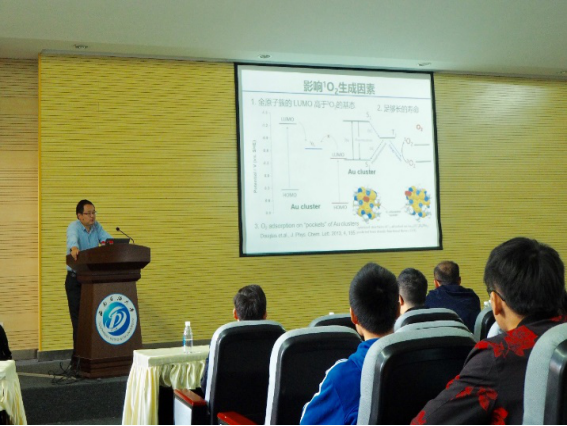 李杲研究員談到:“在最近10年里,原子精確的金原子簇已經(jīng)被證明是一種新型的納米金屬催化劑。”隨后,他圍繞“金屬原子簇催化”這個(gè)研究方向,詳細(xì)深入地講解了金屬團(tuán)簇改性的穩(wěn)定性、Ni團(tuán)簇改性的影響,以及由反應(yīng)中間體判斷可能的催化機(jī)理等。他表示,借助金原子簇催化劑的尺寸效應(yīng)、配體效應(yīng)、雜金屬摻雜等,可通過(guò)尺寸聚焦的方法實(shí)現(xiàn)金原子簇合成的顯著進(jìn)步。同時(shí),他指出,金原子簇催化劑在催化反應(yīng)中有著十分重要的應(yīng)用,如選擇性氧化和加氫,及C—C偶聯(lián)反應(yīng)等。會(huì)后,李杲研究員與參會(huì)人員就相關(guān)問(wèn)題進(jìn)行了討論和交流。