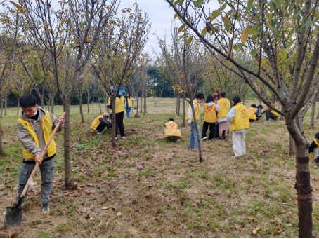 在維護過程中,同學們各司其職,為每棵樹苗進行除草、鏟石、松土等維護工作。盡管秋風冷冽,但是大家仍然以飽滿的精神狀態進行維護活動。在大家的共同努力下,讓學子林在寒風中依然充滿活力,周圍環境也更加整潔有序,志愿者們也在勞動中收獲了快樂與成果。