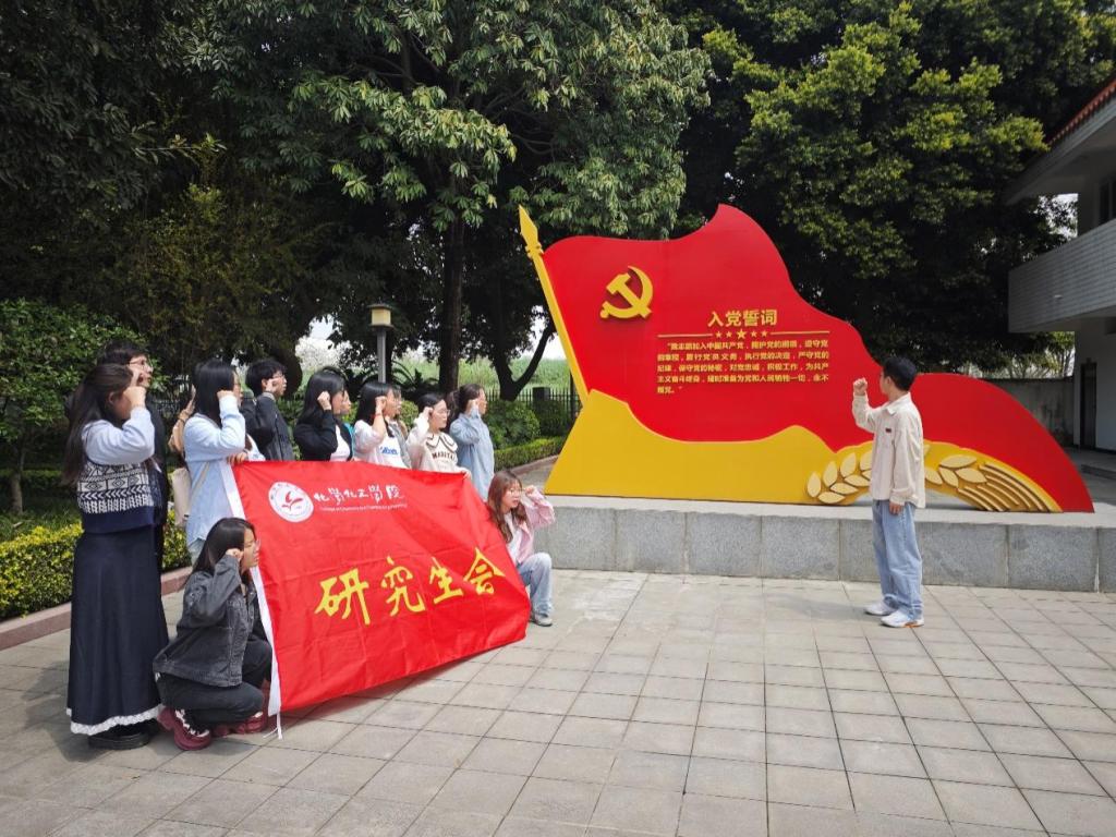“我志愿加入中國共產黨,擁護黨的綱領,遵守黨的章程......”在紀念碑前,全體黨員面對黨旗,高舉右拳,在研會成員馬超城的領誓下重溫入黨誓詞,字字鏗鏘的誓言回蕩在陵園上空,彰顯了新時代共產黨員的使命擔當。