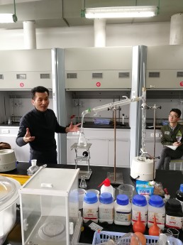 10月12日,段文猛老師重點講解了蒸餾與分餾的實驗操作與注意事項,構架了蒸餾與分餾的理論知識體系,并且親自動手給助教示范如何搭建規范、美觀的實驗裝置,他強調:“分餾、蒸餾裝置的安裝必須按照‘由下往上、由左往右’的順序進行,裝置安裝好后,要做到‘夾持牢固、連接嚴密、橫平豎立、成線成面’的要求。”