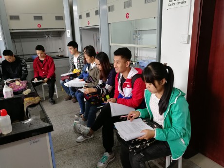 化工院研究生助教團在段文猛老師的指導下,于2017年10月11日、12日和17日進行了團內實驗培訓。10月11日,段文猛老師提出了對助教團全體成員的期冀:“你們將要成為一位老師,一個優秀的老師需要嚴格要求自己,這就需要你們從現在起,規范自己的操作,反復練習,永遠不對自己說‘差不多’、‘可以了’。”段文猛老師首先要求伍友清和楊曉燕兩位成員演示移液操作,其余同學認真觀察,以發現實驗中的問題,警醒大家。隨后,段文猛老師對前期教學內容進行了系統的復習,幫助助教團成員梳理知識網絡,查漏補缺。