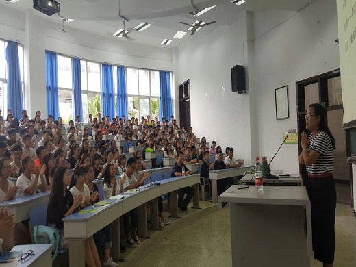 陳老師從如何調(diào)適初入大學(xué)時的不適應(yīng),心理上的落差,以及提高學(xué)習(xí)生活的自控力等方面進行了講解。她認為,心理上的落差主要是因為環(huán)境的不適應(yīng)、以及對未來的不確定。如何消釋這種落差與不適應(yīng),陳部長向同學(xué)們支招“空杯心理”——新的起點,學(xué)會將以前的事物放下,將“心杯”倒空,才能在其中放入更有價值的東西,如此循序漸進,人才能逐漸成長。
