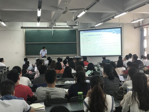 接下來,學院副院長段明向同學們介紹了學院研究生培養要求,主要從以下幾點進行了說明,化工院研究生工作分工、學院學科情況、研究生課程修讀與考核辦法、畢業論文相關規定以及學術論文公開發表規定等。段明老師也向同學們表達了自己的祝福,希望同學們在這三年中學有所獲,學有所成,做一個有擔當的人。