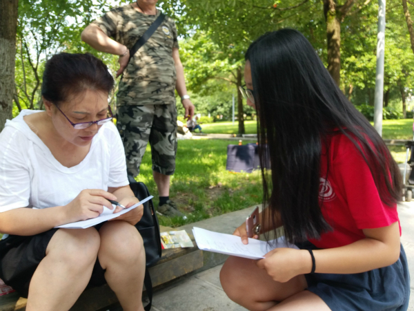 在發問卷之前,隊員們進行了分組,分別前去遵義市的不同街道,對不同年齡段、不同職業的本地人發放問卷調查。隊員們了解到遵義當地紅色文化資源和自然資源十分豐富,通過革命傳承工作和紅色旅游,城市發展迅速,從當初一個小縣城發展成為省內的“金三角”城市,成為省內第二大城市發展群。醫療、教育、商業等基礎服務配套逐漸完善,當地群眾的生活水平也得到了提高。但發展的同時也顯露出一些問題,一些基礎設施不夠完善,像交通設施和環保設施。一位熱情的阿姨對我們說道,遵義市最近幾年的道路交通問題比較大,路面坑洼不平的情況比較多,道路較窄的情況下,路面不平會造成一定的堵車現象。