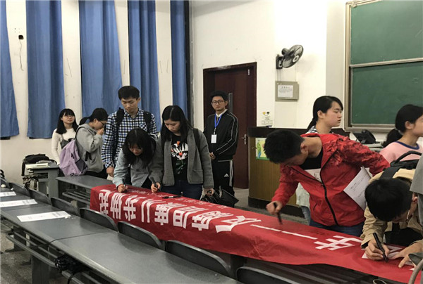 討論分享過后,對于“反腐倡廉”該怎樣做?化學化工學院學生黨員公寓服務站發出了以“有腐必反有貪必報,網絡反腐理性發聲,堅守原則踐行模范”的倡議,并組織同學們有序進行了“反腐倡廉,從我做起”的莊嚴的簽字儀式。