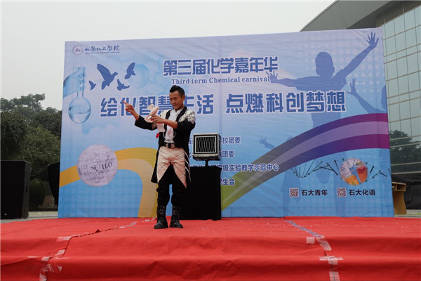 在同學(xué)們參與趣味化學(xué)實(shí)驗(yàn)的同時(shí),現(xiàn)場(chǎng)還進(jìn)行了魔術(shù)表演、小人舞等娛樂節(jié)目,更有化工好聲音傾情獻(xiàn)唱,活躍氣氛。同時(shí),此次閉幕式還通過微信平臺(tái)抽取在場(chǎng)幸運(yùn)學(xué)生并送出精美禮品。