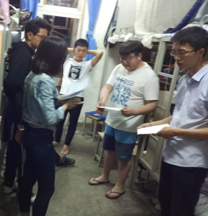圖1:陳剛在21棟公寓記錄學生檢查情況