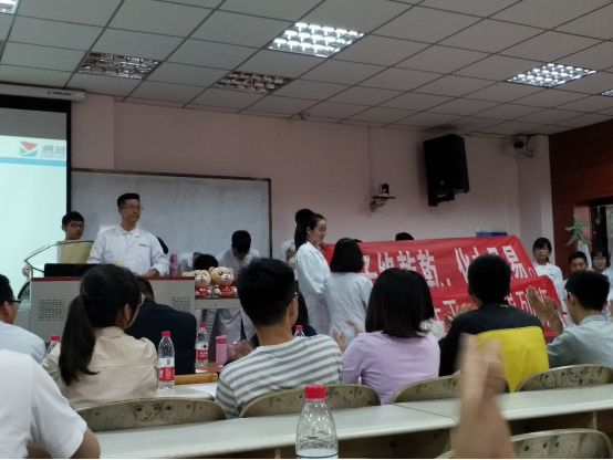 各個班級上臺展示他們的易班建家計劃。如同八仙過海,各顯神通,而在這里化工一班采用實驗步驟,通過收集原料、測酸堿度、融合反應、稱量評估四個步驟比擬出班級建設的步驟,班級同學如同化學反應一般相互碰撞,通過一系列活動,最終完美融合在一起、通過易班創建出凝聚力極高的班級家。