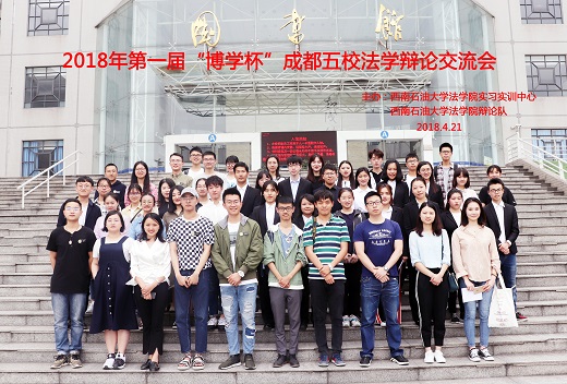 2018年4月21日下午,“‘博學杯’成都五校法學辯論交流賽”在西南石油大學思學樓D106順利舉行,參賽各方有:成都理工大學代表隊,四川師范大學代表隊,西華大學代表隊,西南石油大學法學院代表隊、四川大學代表隊與西南石油大學化工院代表隊。本次交流賽由西南石油大學法學院承辦,其他校代表隊及化工院辯論隊受邀參加,本次交流賽分三場舉行,各隊針對不同的觀點進行了精彩的唇槍舌戰,過程激烈,氣氛活躍。