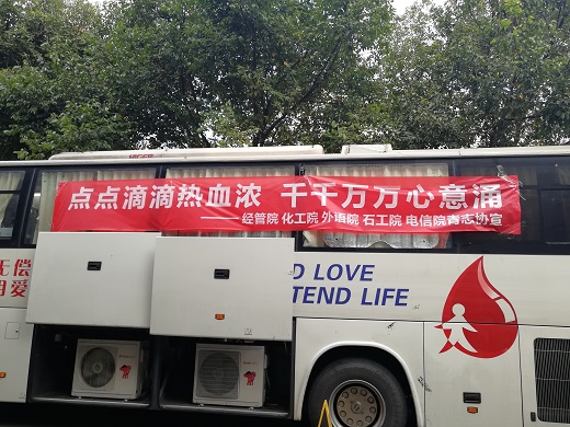 16日、17日,獻血車??吭谝皇程?、二食堂門口,任何愿意獻血的同學可以在獻血車處獻血,為社會奉獻自己的一份力量?;顒舆M行過程中,同學們熱情很高,16日天氣炎熱,溫度高達33℃,但仍有許多同學排隊獻血;17日,雖然在下雨,但是也有許多同學等候著獻血,同學們都想盡自己所能為社會做自己力所能及的事情。