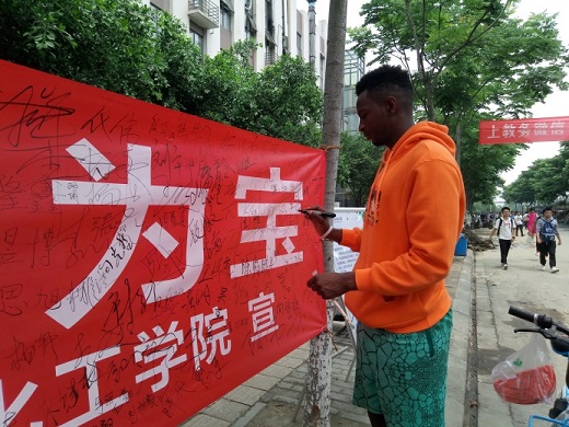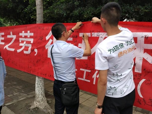 青年志愿者協會志愿者王國棟為來往同學宣講到:“垃圾是放錯位置的資源,通過分類投放、分類收集,把有用物資從垃圾中分離出來重新回收利用,既可提高垃圾資源利用水平,又可減少垃圾處置量。希望同學們積極參與到垃圾分類的行動中,養成垃圾分類的好習慣。”化學工程與工藝2017級劉波同學表示,日常生活中的垃圾分類只是你我舉手之勞,但對于環境與自我發展卻意義深遠。在活動舉辦之前,自己缺少垃圾分類的意識和習慣,但經過本次現場簽名與志愿者的講解,決定成為一名垃圾分類“代言”人,從自身做起,并號召自己的同學和家人朋友樹立綠色環保意識,將垃圾分類落到實際行動中,為實現美麗中國貢獻自己的力量。