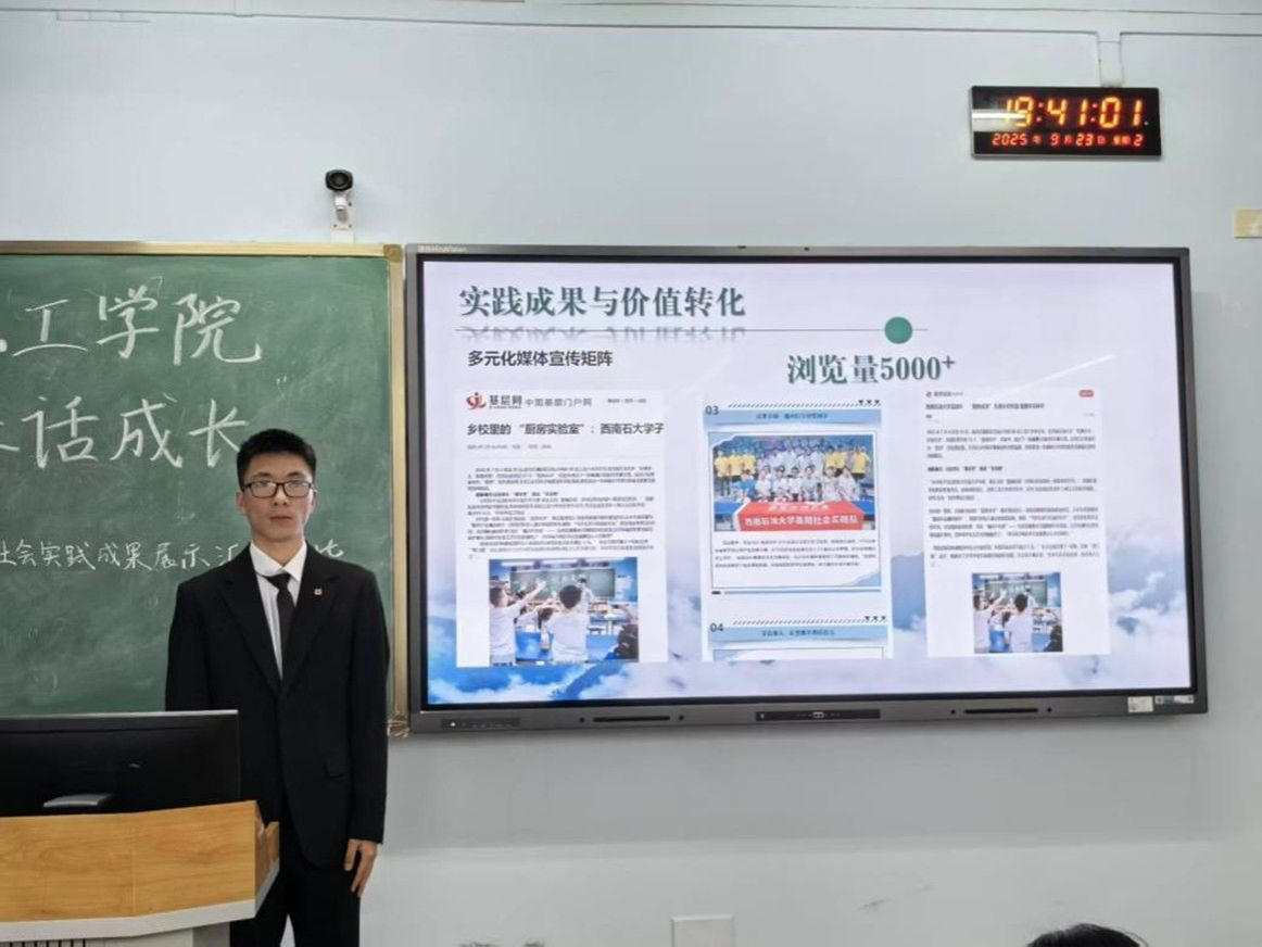 觀看完匯報展示評比后,化學工程與工藝2024級學生馮仁子感觸頗深,說到“各個實踐隊的精彩講述,讓我仿佛跟隨他們的腳步,親歷了一場場扎根基層、服務社會的青春實踐,這才是青春應有的模樣。”