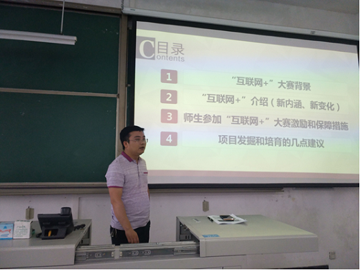 會議伊始,校創新創業中心創新教育科科長肖鴻運為全院教職工從第四屆“互聯網+”大賽背景、新內涵新變化、賽程及安排、報名方式以及我校的激勵和保障政策等方面進行詳細解讀,并鼓勵我院教師認真發掘項目,指導學生積極參賽。